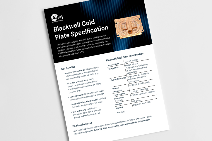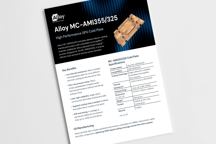 × Search Why Alloy? Solutions By Industry Data Center Cooling Defense Electronics Industrial Sustainability About Careers Explore Launch Our Interactive Tool Contact Us Why Alloy? Solutions By Industry Data Center Cooling Defense Electronics Industrial Sustainability About Careers Explore Launch Our Interactive Tool Contact Us Why Alloy? Solutions By Industry Data Centers Defense Electronics Industrial About Events News Videos Resources Compliance FAQs Careers Explore Why Alloy? Solutions By Industry Data Centers Defense Electronics Industrial About Events News Videos Resources Compliance FAQs Careers Explore Why Alloy? Solutions BY INDUSTRY Data Centers Defense Electronics Industrial About Events News Videos Resources Compliance FAQs Careers Explore Why Alloy? Solutions BY INDUSTRY Data Centers Defense Electronics Industrial About Events News Videos Resources Compliance FAQs Careers Explore × Search Contact Us Resources Liquid Cooling That Scales with the Blade Learn More Blackwell Cold Plate Specification Learn More Alloy MC-AMI355/325 Learn More The Future of Liquid Cooling Learn More Stack Forging™ Learn More